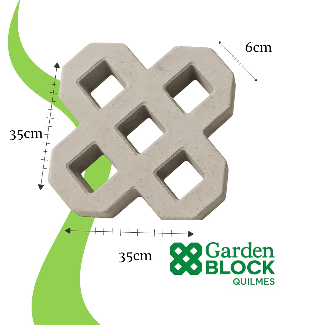 ES UN BLOQUE DE HORMIGÓN DE ELEVADA RESISTENCIA, SIENDO IDEAL PARA SER COLOCADO EN JARDINES, YA QUE POR SU FORMA PERMITE CONSERVAR EL VERDE, BRINDANDO UN ASPECTO NATURAL.